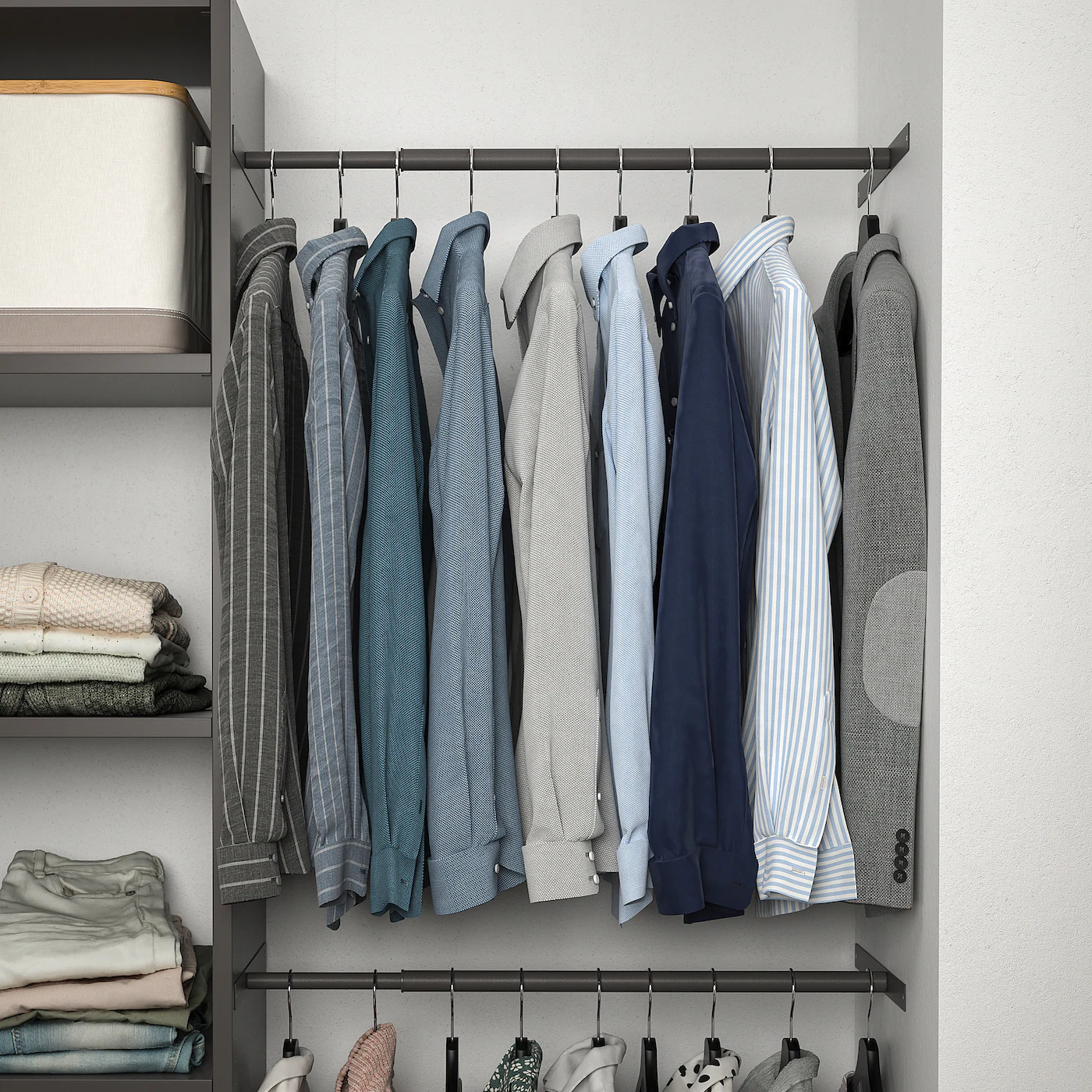You can combine open and closed storage – shelves for your favorite things and drawers for the things you want to store away. Adjustable shelves and clothes rail make it easy for you to customize the space according to your needs. The long leg creates a beautiful look and is perfect if you have a high plinth at home. Adjustable feet make it possible to compensate for any irregularities in the floor.Material