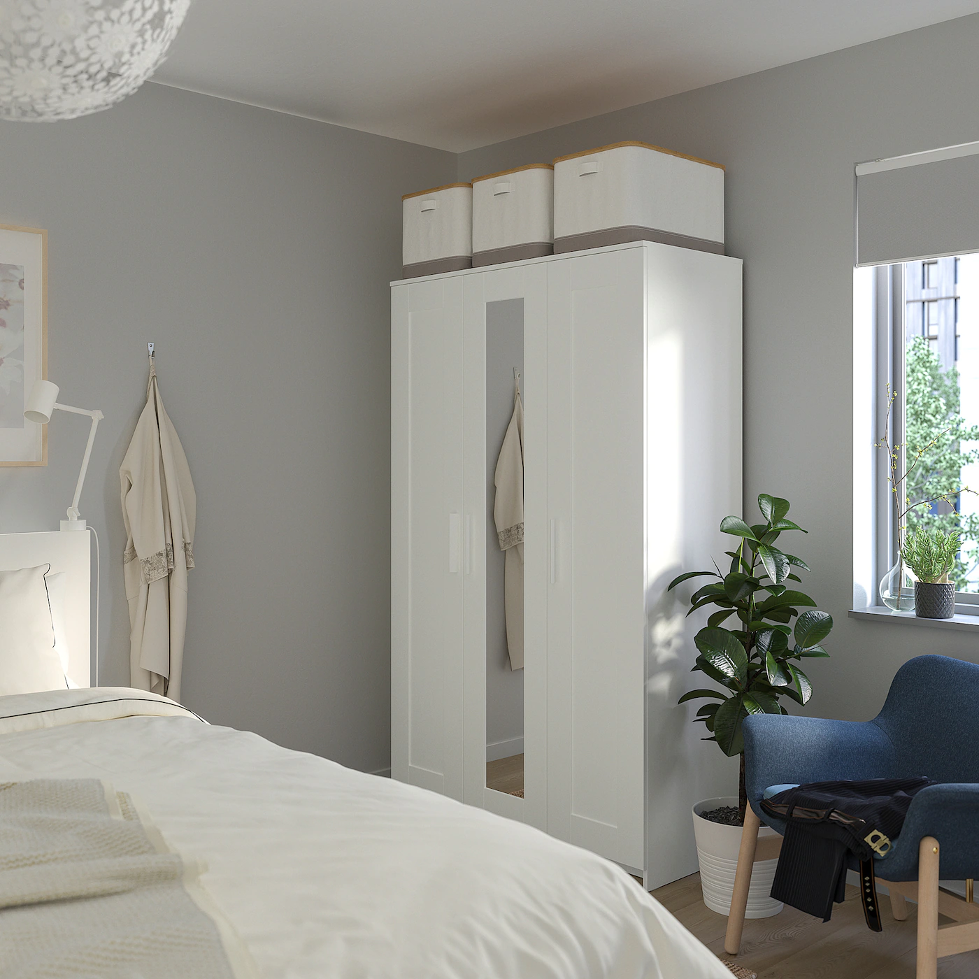 The mirror door can be placed on the left side, right side or in the middle. Adjustable shelves make it easy to customize the space according to your needs. If you want to organize inside, you can complement with interior accessories from the SKUBB series.Material