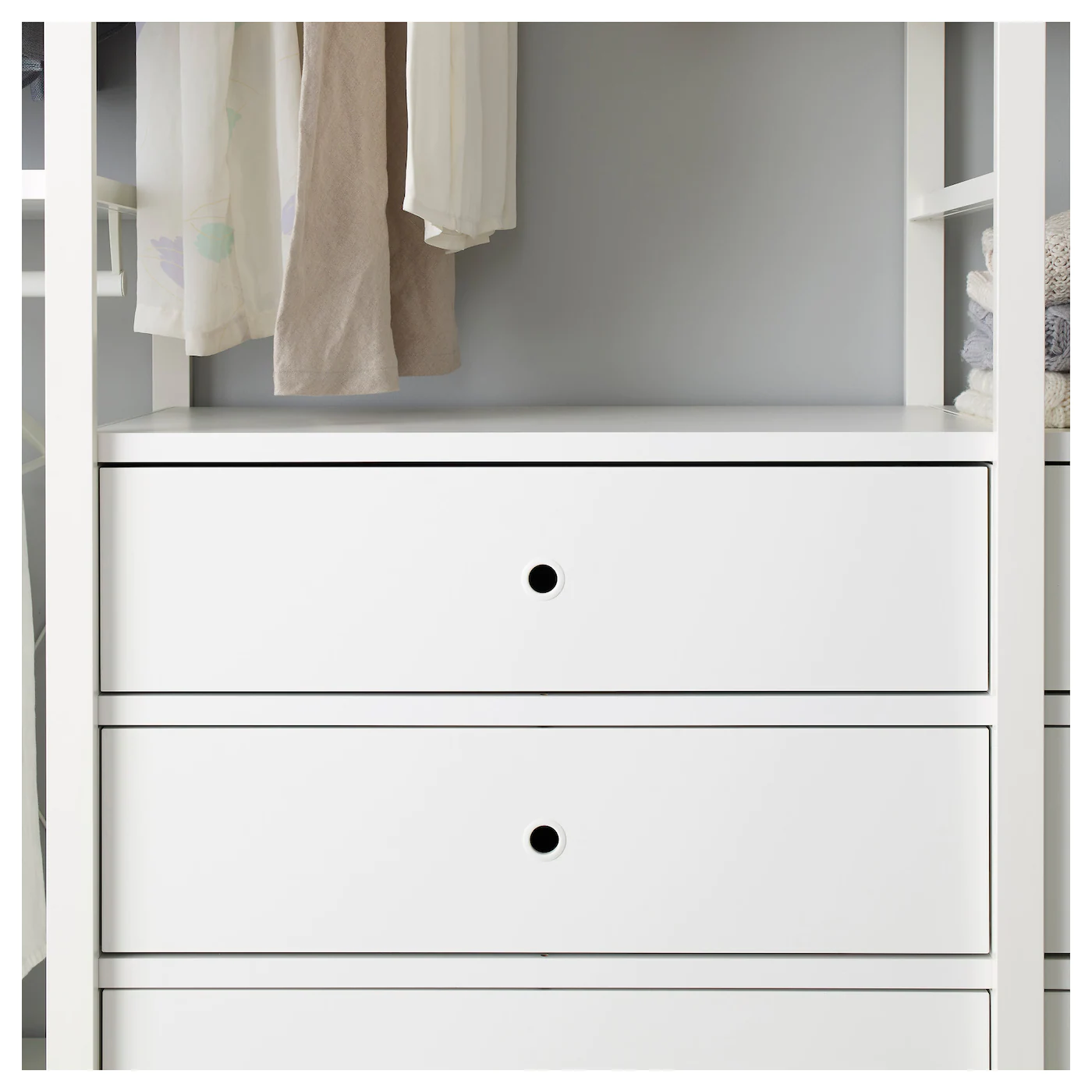Adjustable shelves and clothes rails make it easy for you to customize the space according to your needs. You can combine open and closed storage – shelves for your favorite things and drawers for the things you want to store away. Drawers with integrated dampers close slowly, silently and softly.Material