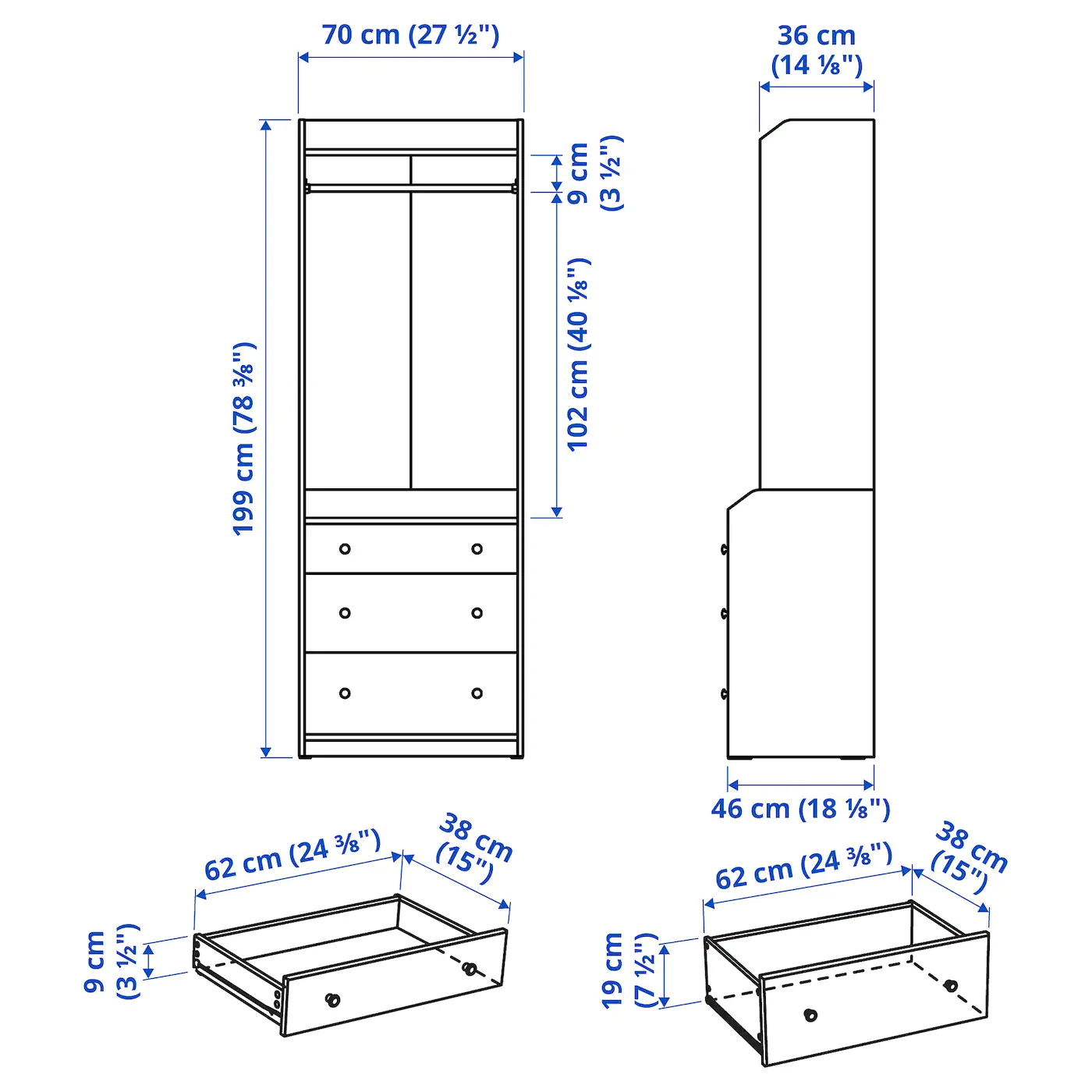 Designed to be used both on its own throughout the home and is also a perfect fit with other furniture in the HAUGA series, either to coordinate the style or create bigger storage solutions. Maximize your storage and create a coordinated look by building your own HAUGA storage combination. Thanks to the distinctive look and smart design, furniture in the HAUGA series works well on their own and even better together. The flat, smooth sides create seamless units when pieces are placed next to each other. Hide or display your things by combining open and closed storage. You get a good overview and can easily reach your clothes. You get a handy place to hang your bags, bathrobe and accessories on on the side of the wardrobe by adding SKOGSVIKEN hooks for door. The characteristic top shelf is a common feature in the entire HAUGA series and adds to the traditional style. Regardless if you use it for hats, boxes, or decorations, the edge keeps your things in place. A versatile piece of furniture that you can use in many different rooms in the home. The frame is easy to assemble thanks to the construction with a wedge dowel that easily clicks into the pre-drilled holes.Material