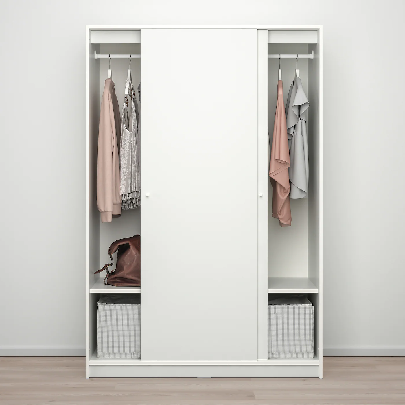 A generous yet easy-to-place wardrobe with a clothes rail and a lower shelf.