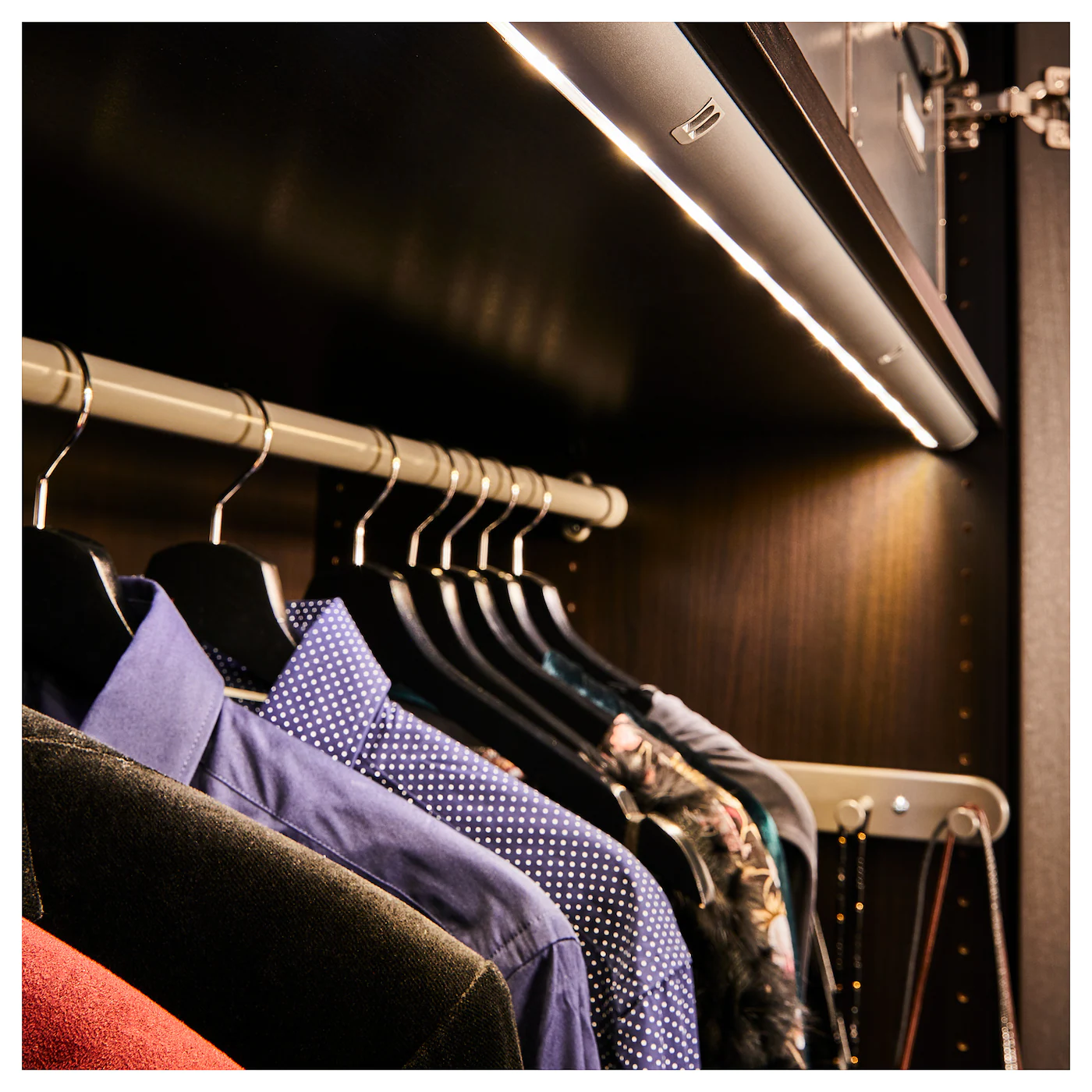 The light switches on and off automatically when you open or close the door so no energy is wasted. Suitable for use in confined spaces, such as cabinets, bookshelves and closets, as the LED light source emits low heat. The LED light source consumes up to 85% less energy and lasts 20 times longer than incandescent bulbs.Material