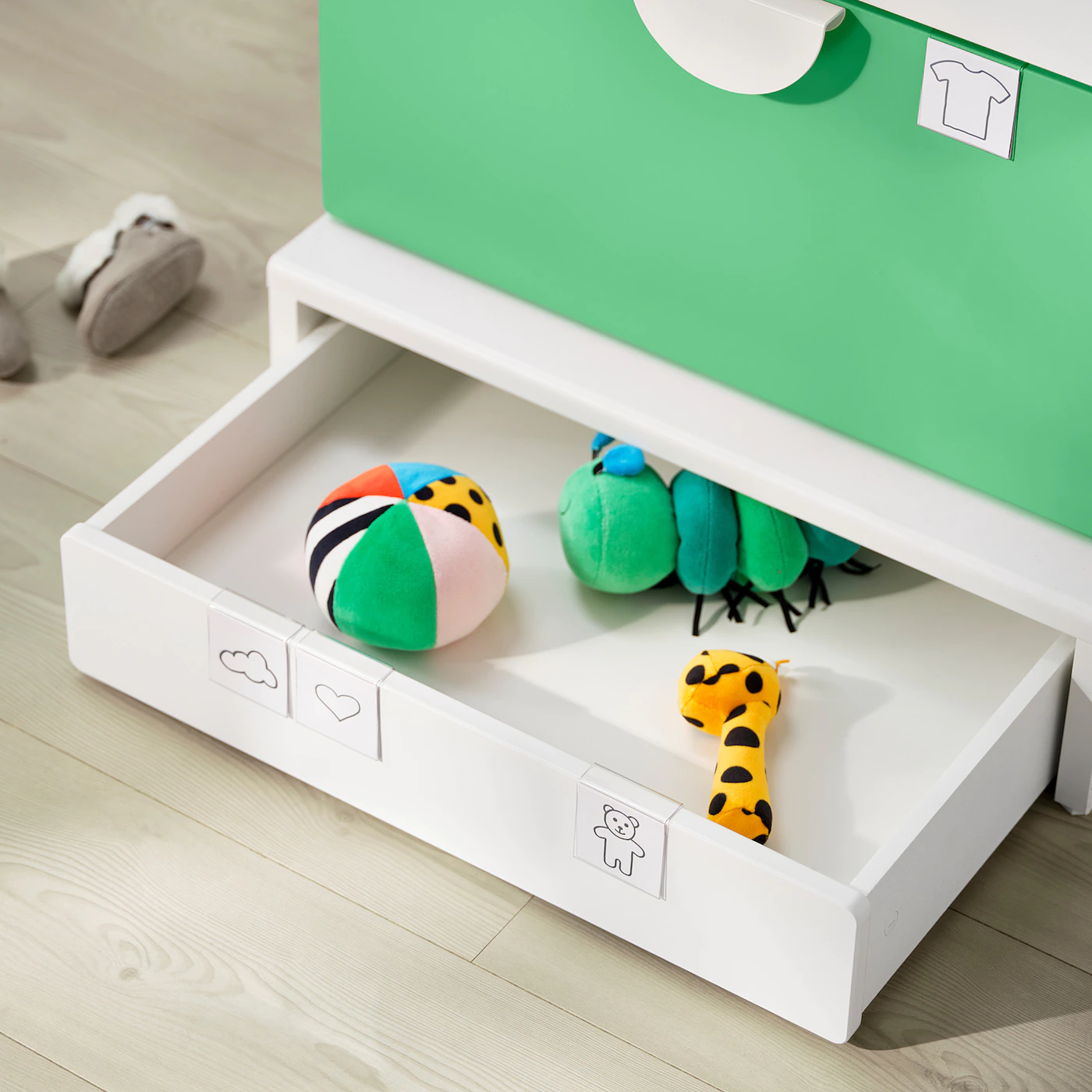 Drawer bottom:Fiberboard, Acrylic paint